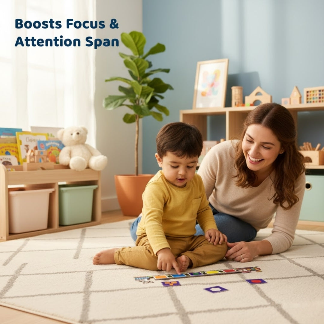 It trains the child’s brain to focus on one thing for a long time, improves their memory and also understand shapes and pattern.
