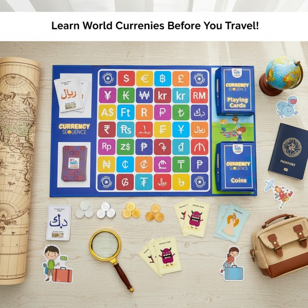 Unlock the world of currencies through a fun, strategic board game. Ideal for kids and adults alike, this game helps players learn 38 popular currency symbols and the countries they belong to – perfect for travel, competitive exams, and more!
