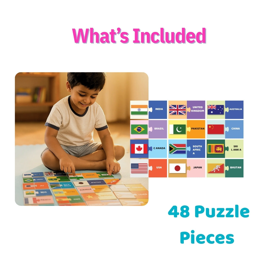 Educational Benefits: Enhance cognitive skills, visual discrimination, and memory retention as children match flags to their corresponding countries, making learning a hands-on and interactive experience.