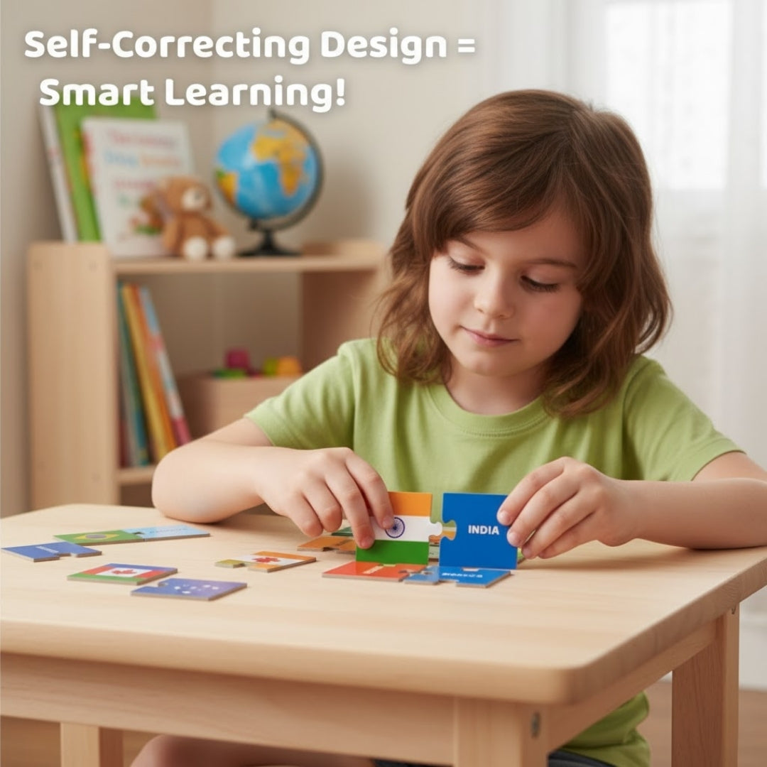 Embark on a Worldly Adventure and Watch Your Child's Curiosity and Knowledge Soar with Flags 2 Piece Self-Correcting Puzzles!