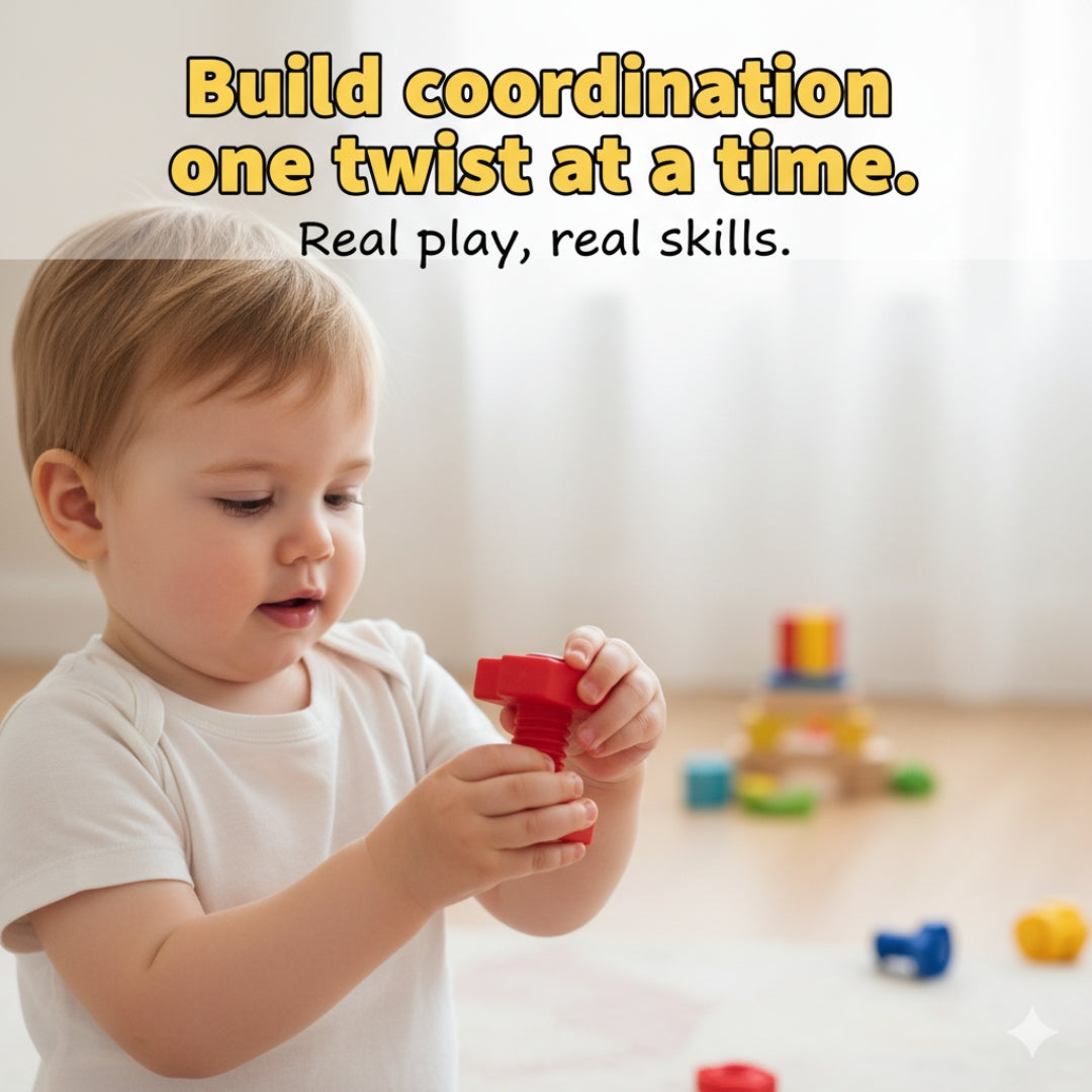 Nuts and Bolts Game comprises of 24 Pieces each in a variety of easy to hold shapes, sizes and vibrant colors