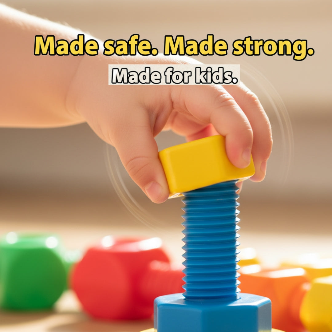 - Child can attach each nut to its bolt, by matching each shape, color and size