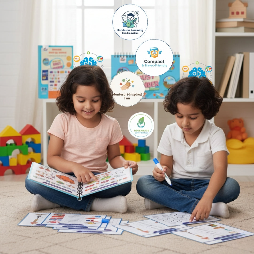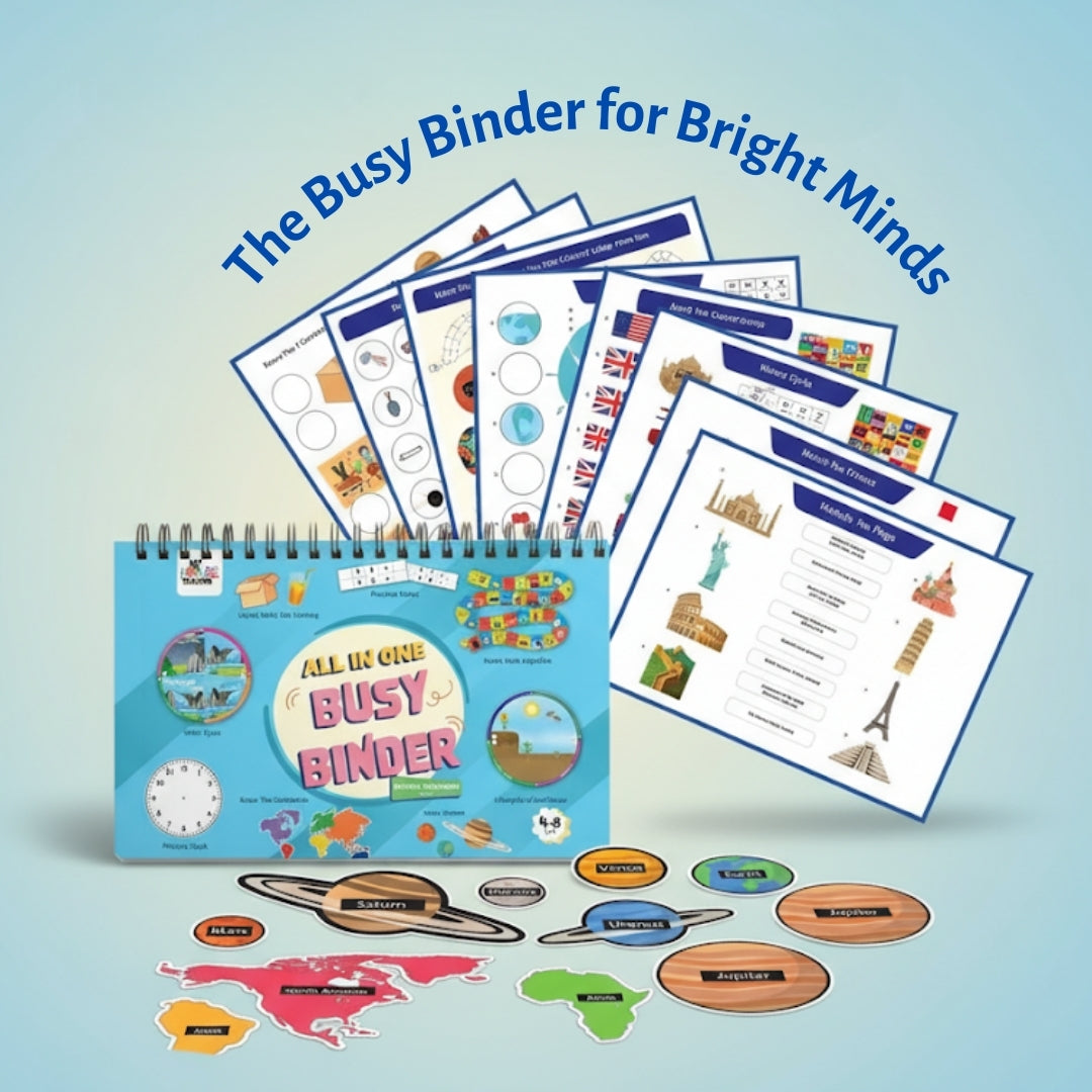 A compact, A4-sized, hands-on learning binder for kids aged 4 to 10 years. Packed with fun, interactive activities, it promotes curiosity and essential early skills through engaging puzzles and reusable pages