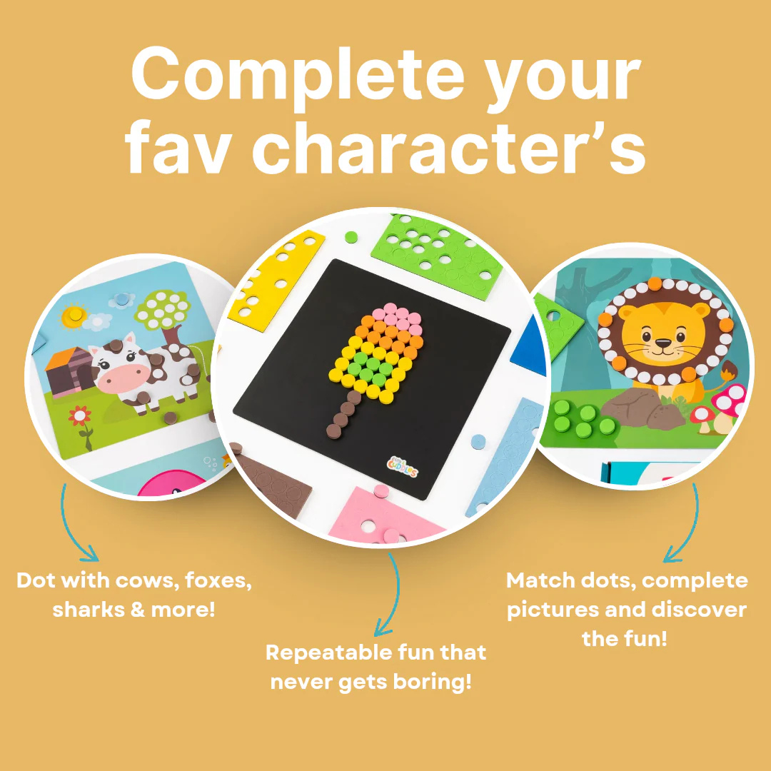 Designed for curious little explorers aged 3+, this activity set brings the jungle to life through bright, reusable magnetic dots that kids can easily pick, place and move. With playful scenes featuring lions, monkeys, elephants and more, your child can complete pictures, create their own patterns and build endless stories — all without any mess.