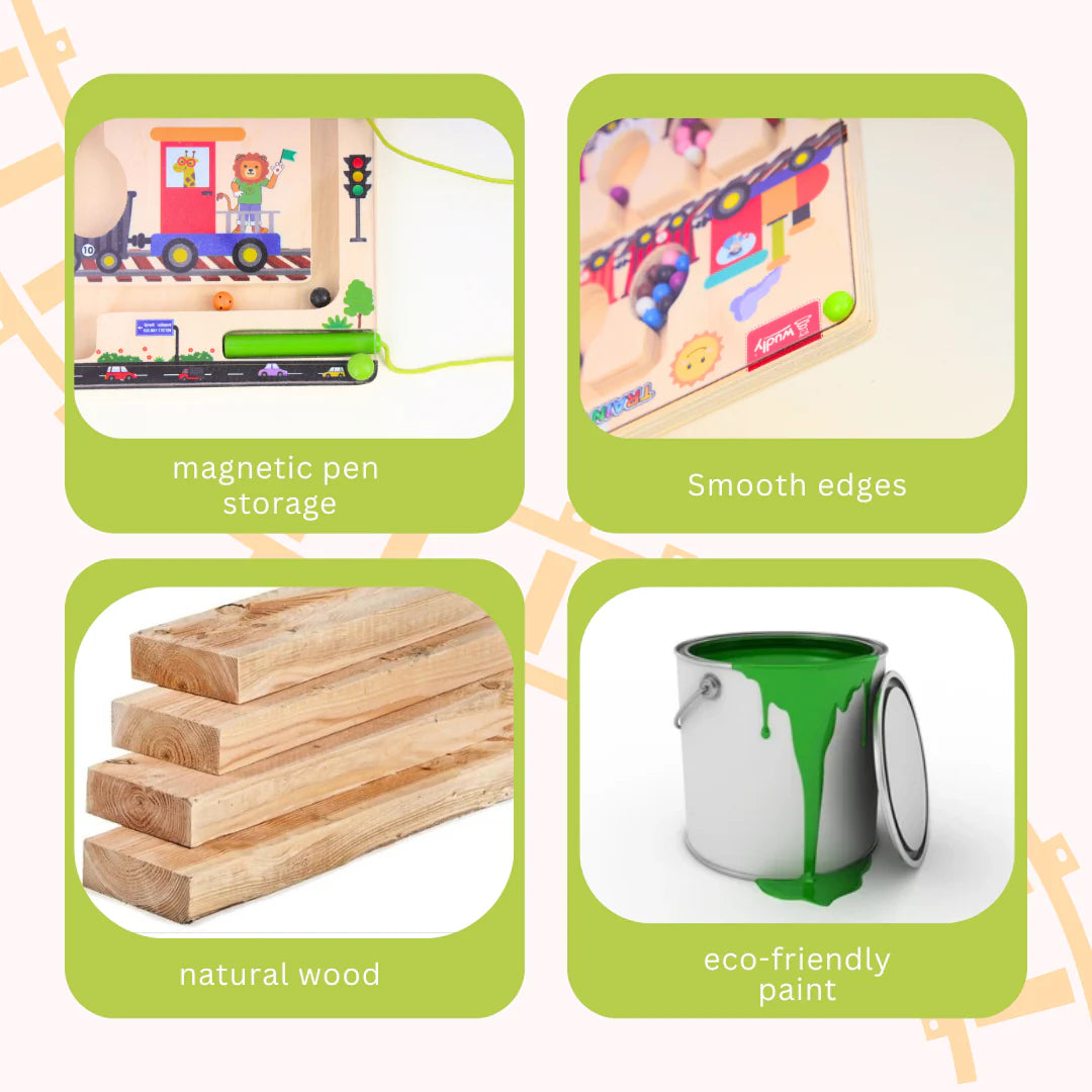 - šØ šš¼š¹š¼ššæš³šš¹ š§šæš®š¶š»-š§šµš²šŗš²š± š š®š“š»š²šš¶š° š š®šš²: Spark your toddler's imagination with this vibrant Montessori-style magnetic maze board designed as an engaging train station. The colourful theme encourages storytelling while making learning fun through play.