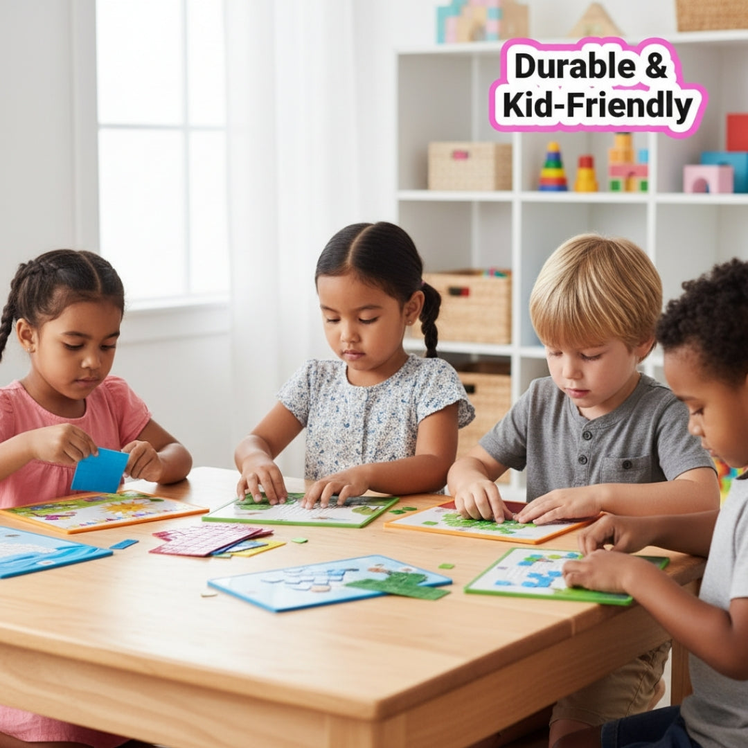 These stickers are specially crafted to adhere easily to the mosaic art template provided, allowing children to create stunning mosaic designs without the need for messy glues or sharp objects. The stickers are safe and non-toxic, making them ideal for young children.