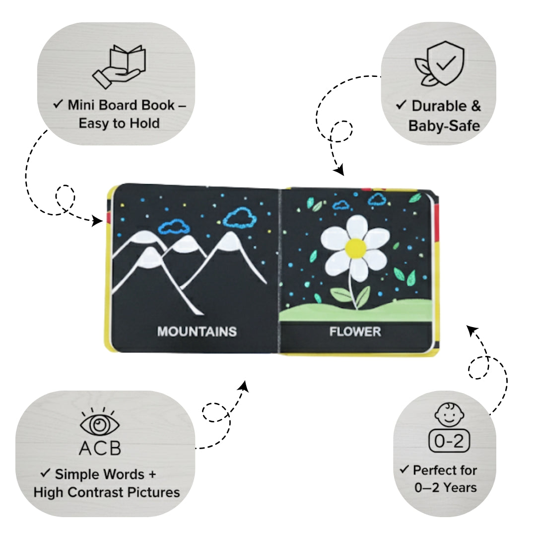 Introduce animals, things, and nature to babies through these high contrast books that are meant to not only mesmerize them but also help focus, learn, and remember better!