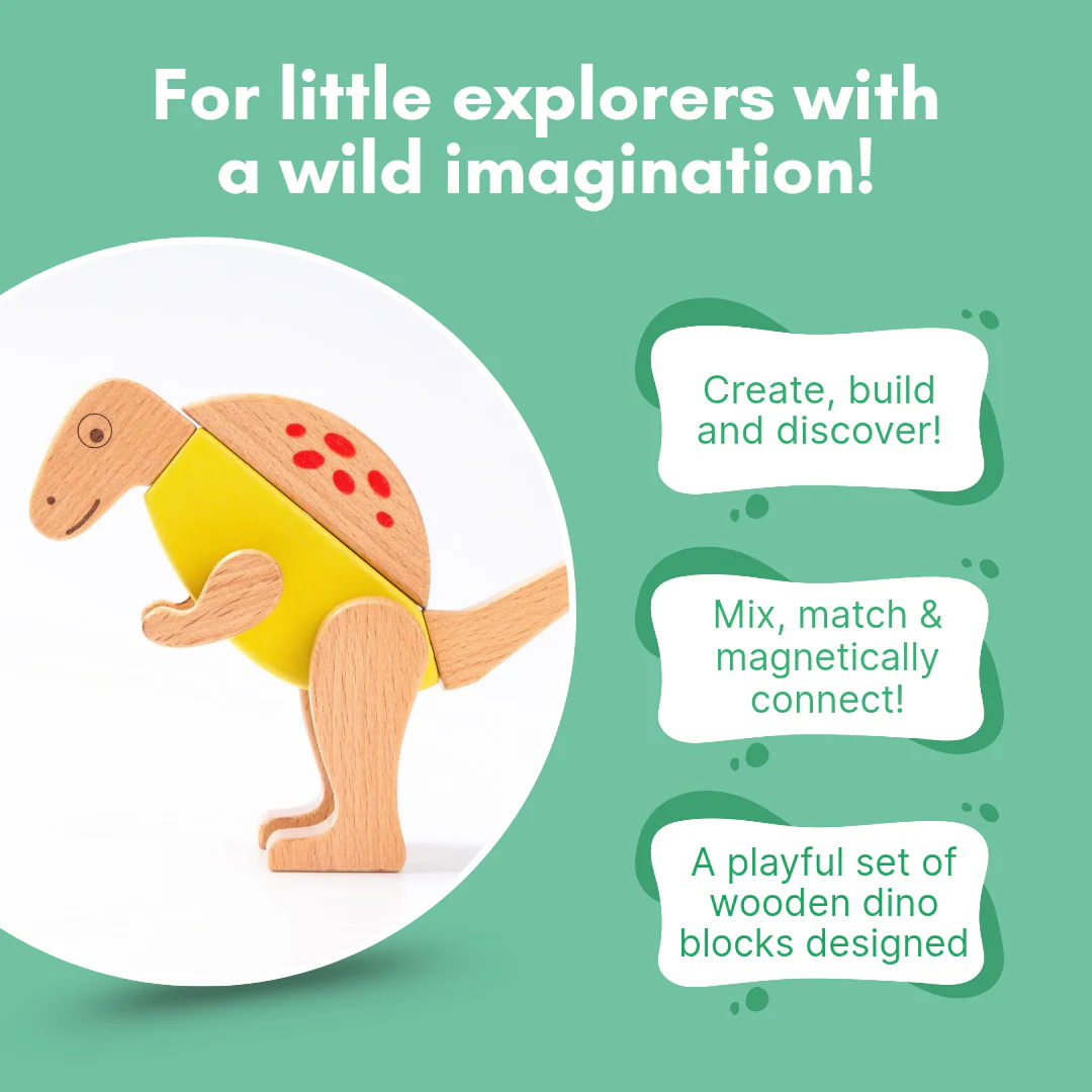 Spark endless imagination with the Premium Quality Wooden Dino Magnetic Blocks (26 pcs) — a beautifully crafted open-ended playset designed for young Dino lovers!