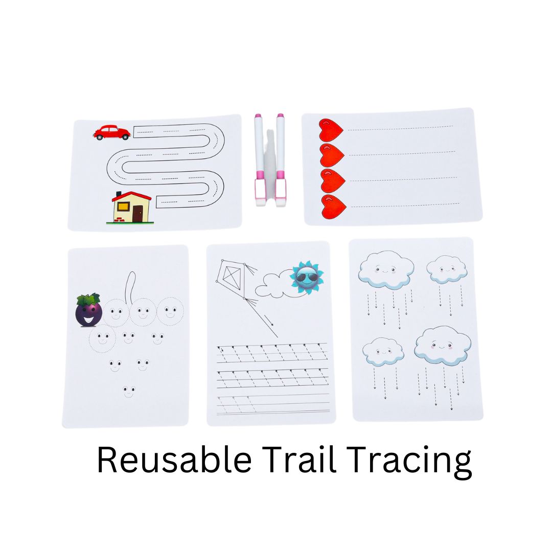 ✍️ Trail Tracing Mats Set – Practice pre-writing strokes with reusable cards using a wipe-clean pen.
