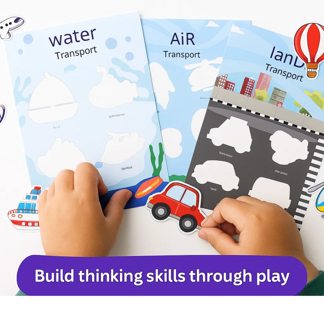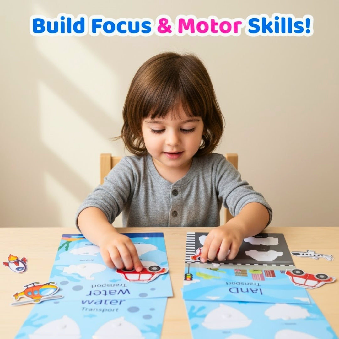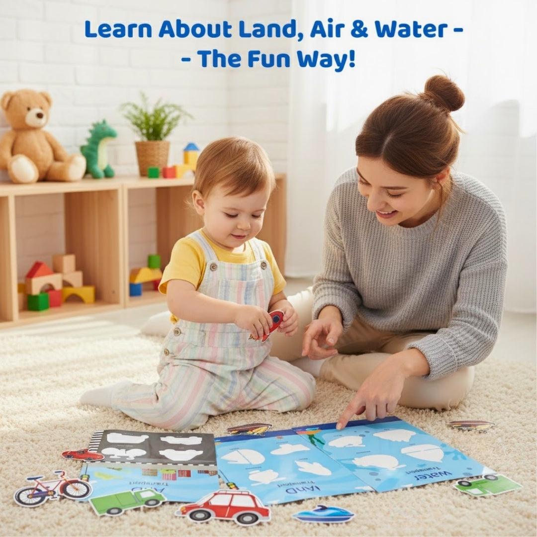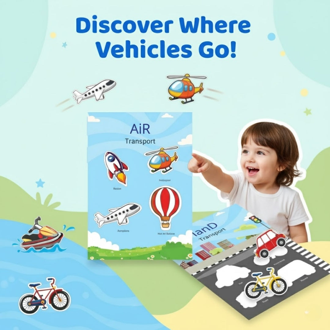 Teach little ones about vehicles and where they travel: on land, air or water easily with this innovative busy bag.