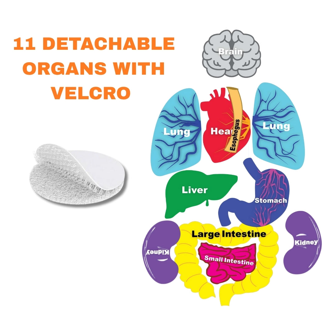 Interactive Learning: Featuring 11 detachable, Velcro-backed organs, including the heart, lungs, liver, and more, children can learn about the human body's inner workings in an engaging, hands-on manner.