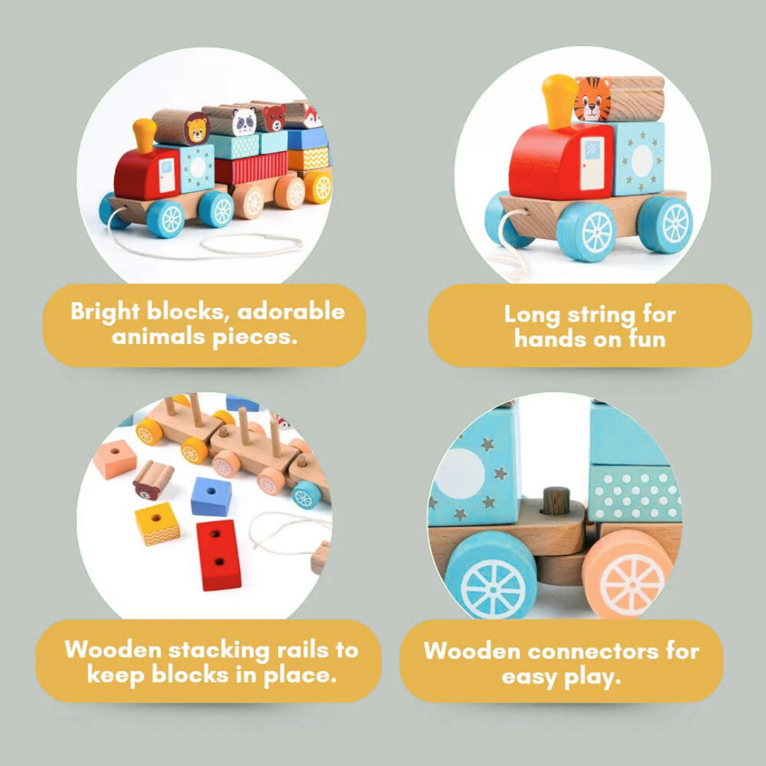 Let your little explorer hop aboard the Wooden Animal Parade Train — a charming wooden pull-along toy that turns every playtime into a joyful jungle adventure! Designed for curious toddlers aged 3+, this colorful parade features adorable animal characters that stack, link and ride together on a smooth wooden train. Each piece is crafted from child-safe wood with rounded edges, perfect for tiny hands to grasp, arrange and pull around the house.