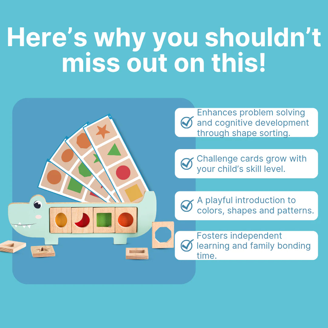 Wooden Crocodile Snap & Learn Shapes Board – For Kids