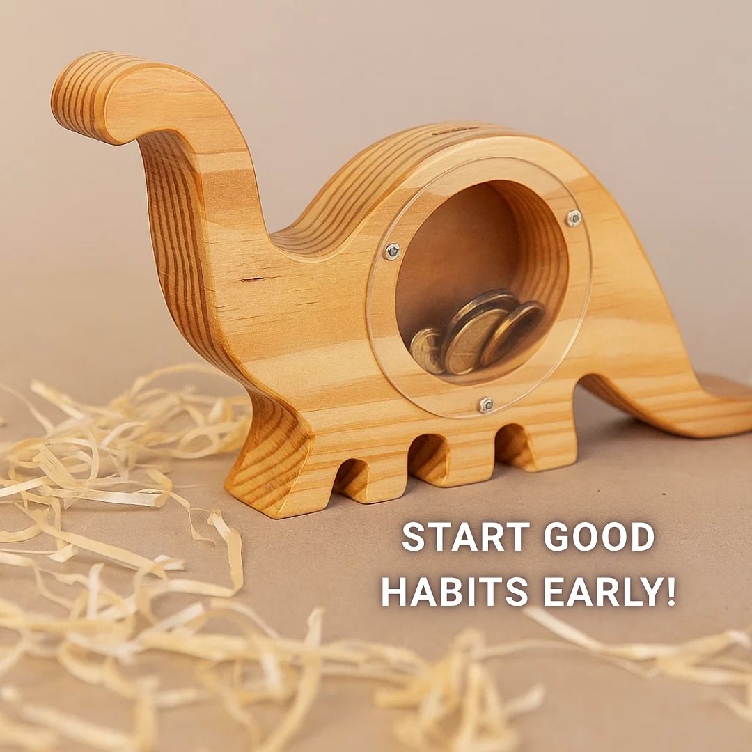 - Eco-Friendly Material: Crafted from high-quality Pine wood, ensuring a safe and sustainable product for your little ones. The Dinosaur Money Bank is a charming and functional way to help children learn about saving.