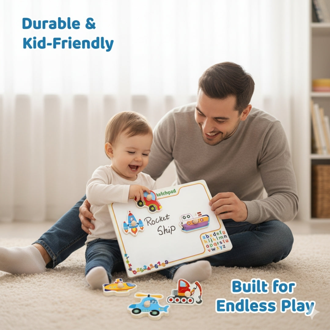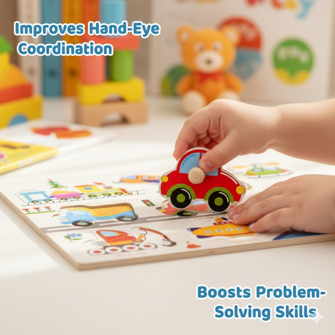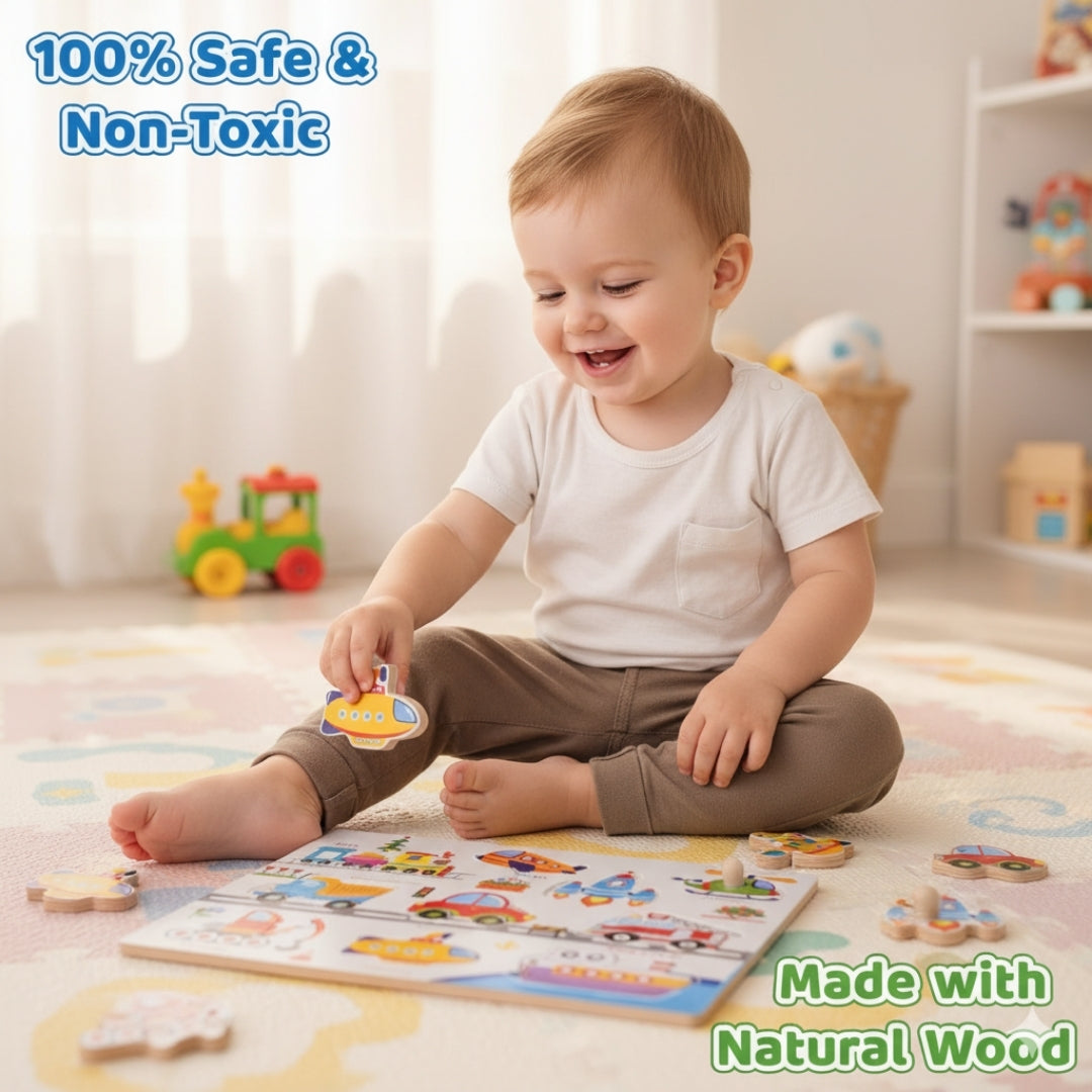 Wooden Vehicles Peg Puzzle with knobs