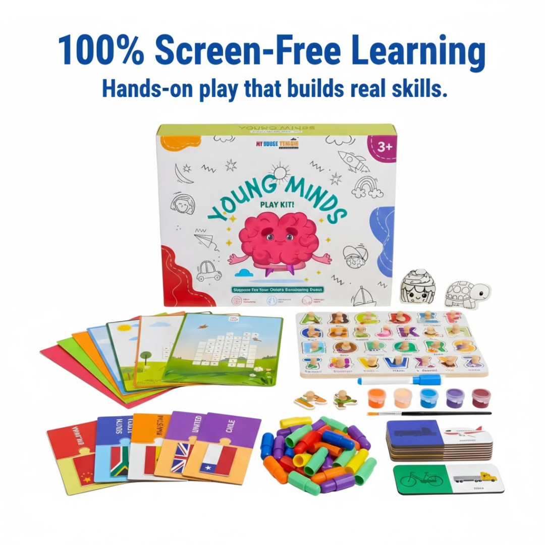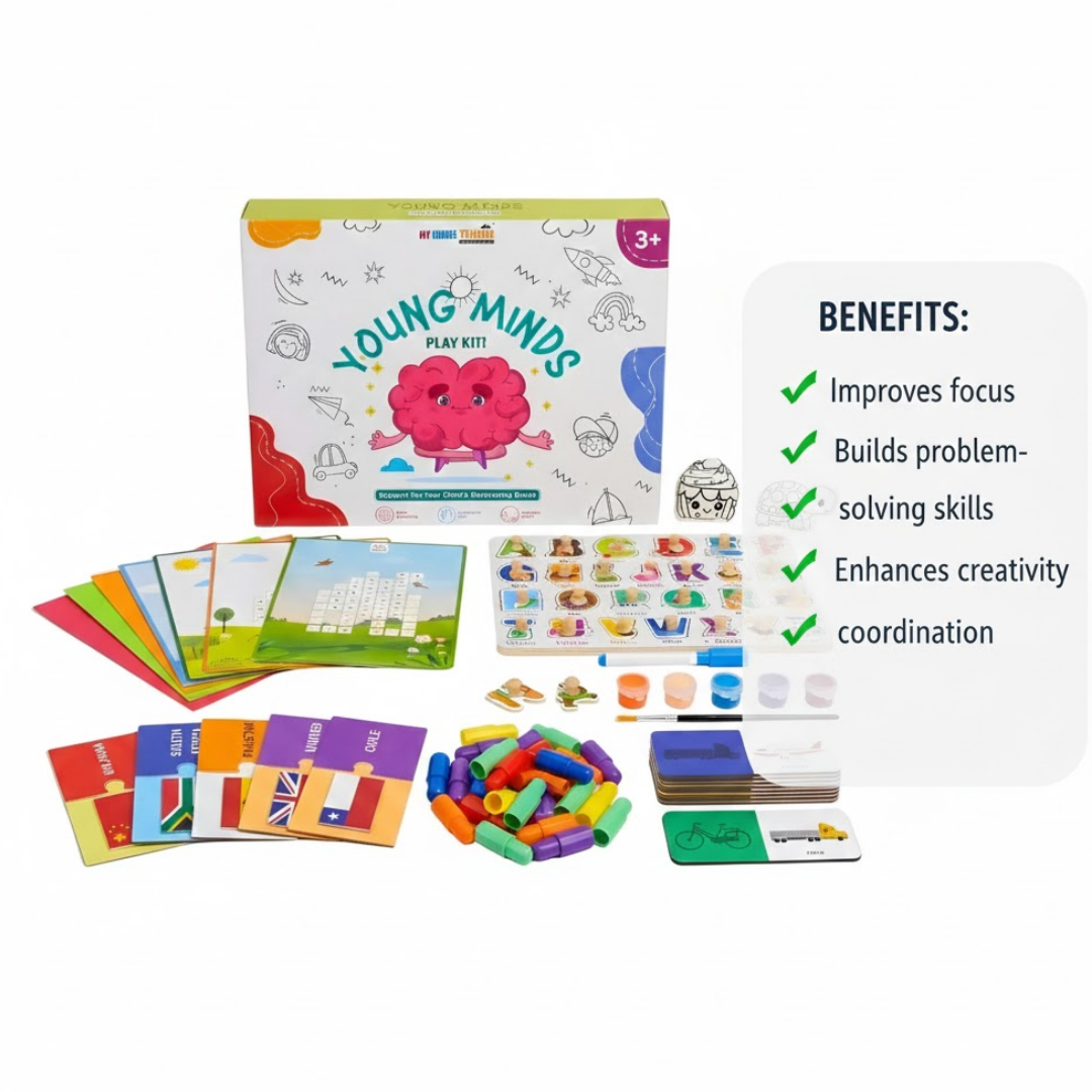 The Young Mind Play Kit (3+ Years) is a thoughtfully curated learning set designed to nurture curiosity, creativity, and confidence in growing toddlers. Packed with engaging, hands-on activities, this kit turns everyday play into meaningful learning — just the way young minds love it.